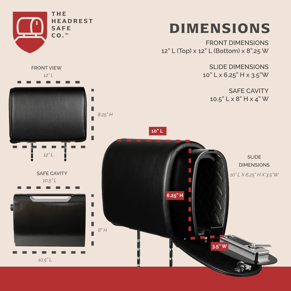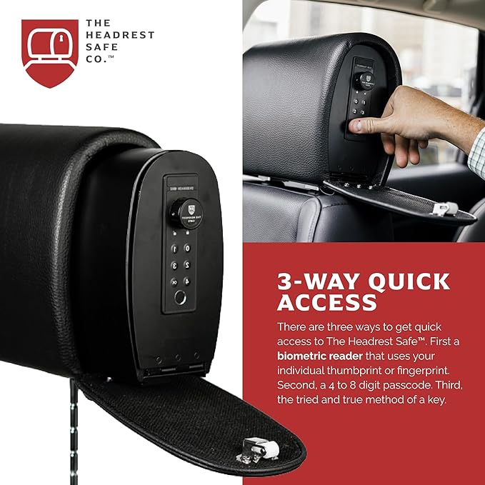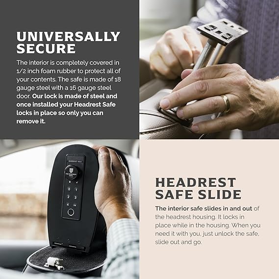 🔑 Protege tus objetos de valor con discreción y seguridad mientras conduces. Nuestra Caja Fuerte para Reposacabezas es la solución ideal para mantener armas de fuego, documentos, dinero y otros artículos importantes fuera del alcance de terceros, pero siempre accesibles para ti.