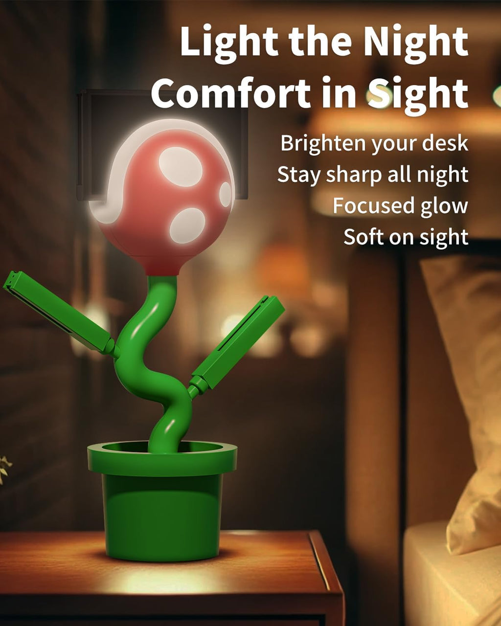 Inspirado en los videojuegos clásicos, su diseño simula una maceta con colores vibrantes 🌱, agregando un toque divertido a tu setup gamer. No solo es funcional, sino que también luce increíble en cualquier espacio.