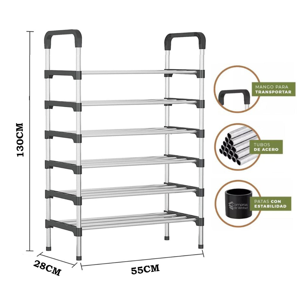 CARACTERISTICAS: • Tiene capacidad para pares de zapatos. • Modelo versátil de 6 niveles. • Ahorra espacio. • Instalación sencilla.